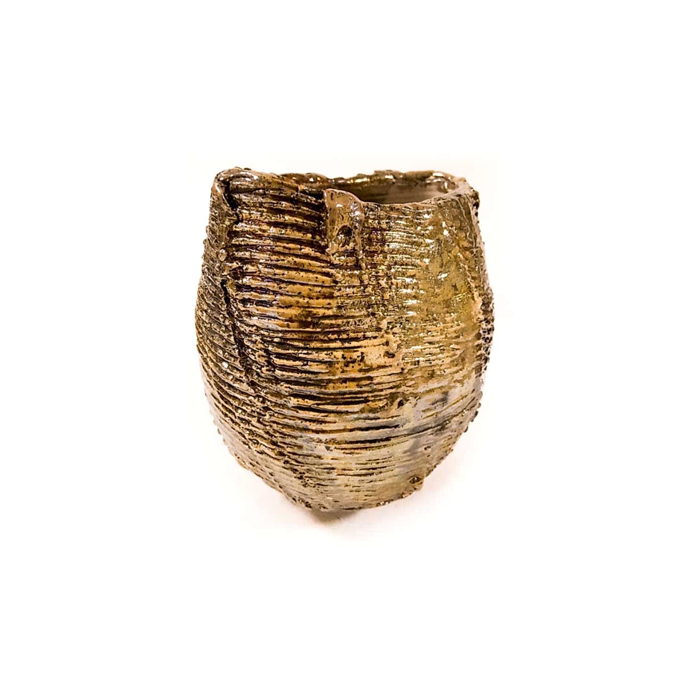 Gold1 fotoğraf BottoArt2020-07-20T19:23:40+03:00 Portföy DescriptionGold isimli eser, tornada şekillendirilmiş olup, yüzey hareketliliği elle şekilendirilerek oluşturumuştur. Alternatif bir pişirim tekniği olan RAKU çalışılmış eserde gold sır kullanılmıştır. PayFacebook Twitter LinkedIn Google + E-posta